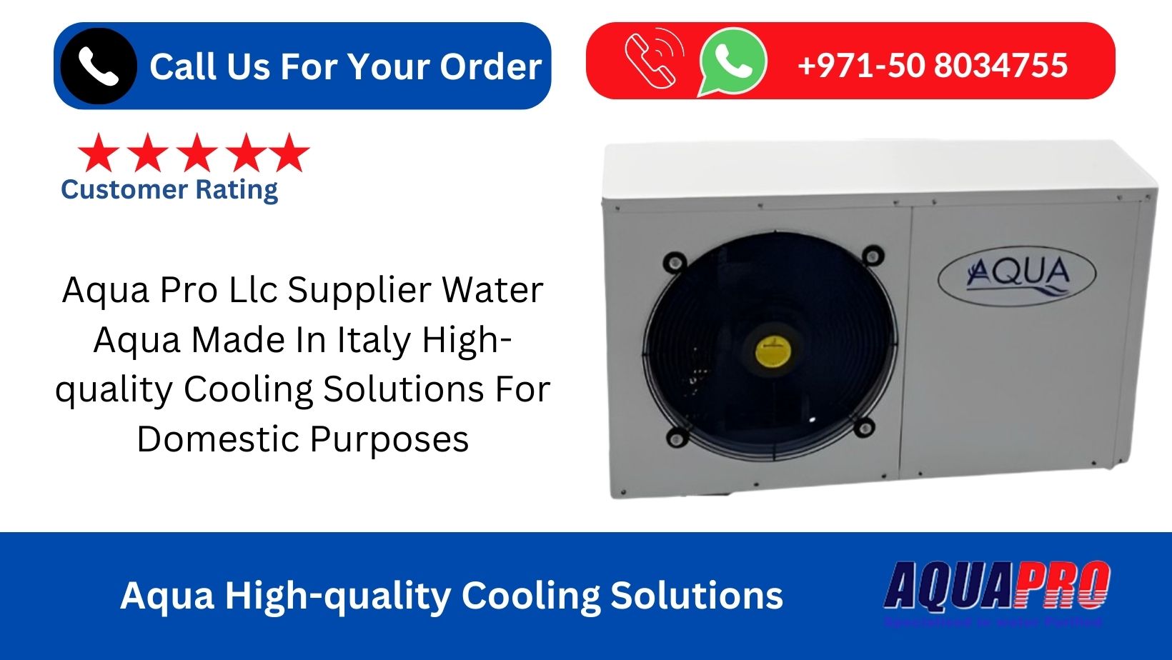 Aqua Pro LLC is a supplier of Water Aqua, a high quality cooling solution for the home made in Italy. As a leading provider of domestic water coolers in the UAE, we offer a wide range of services from 1.5 tons to over 50 tons depending on your requirements.