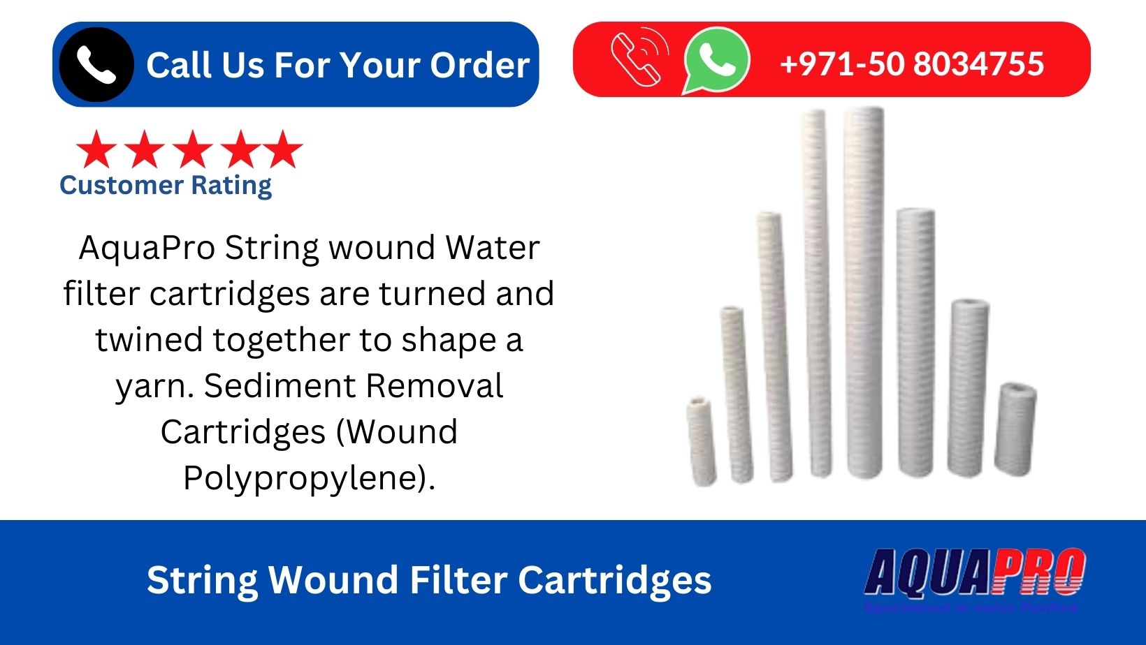 Aqua Pro String Wound Filter Cartridges in Medina are Sediment Removal Cartridges, String Wound Filter Cartridges in major Saudi cities use a specialized honeycomb weave and wound polypropylene yarn to filter water.